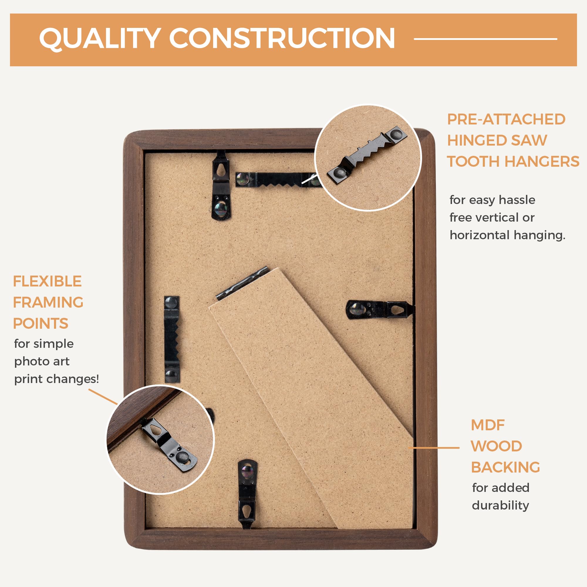 Axeman 8 x 8インチ フォトフレーム | オーク無垢材 8x8 フレーム マット付き 4x4インチ | 8 x 8 木製フォトフレーム プレキシガラス 吊り下げ金具付き ウォールナット