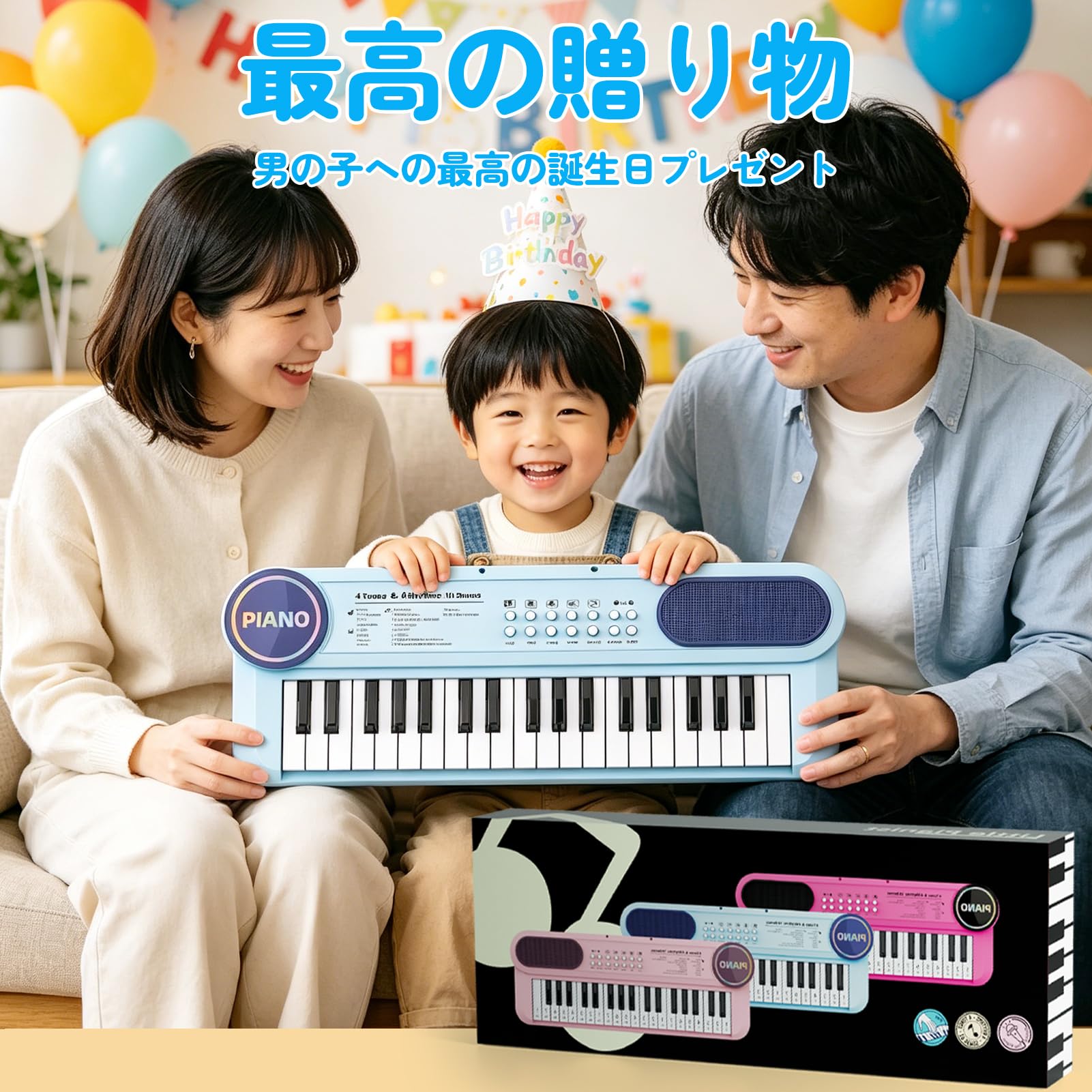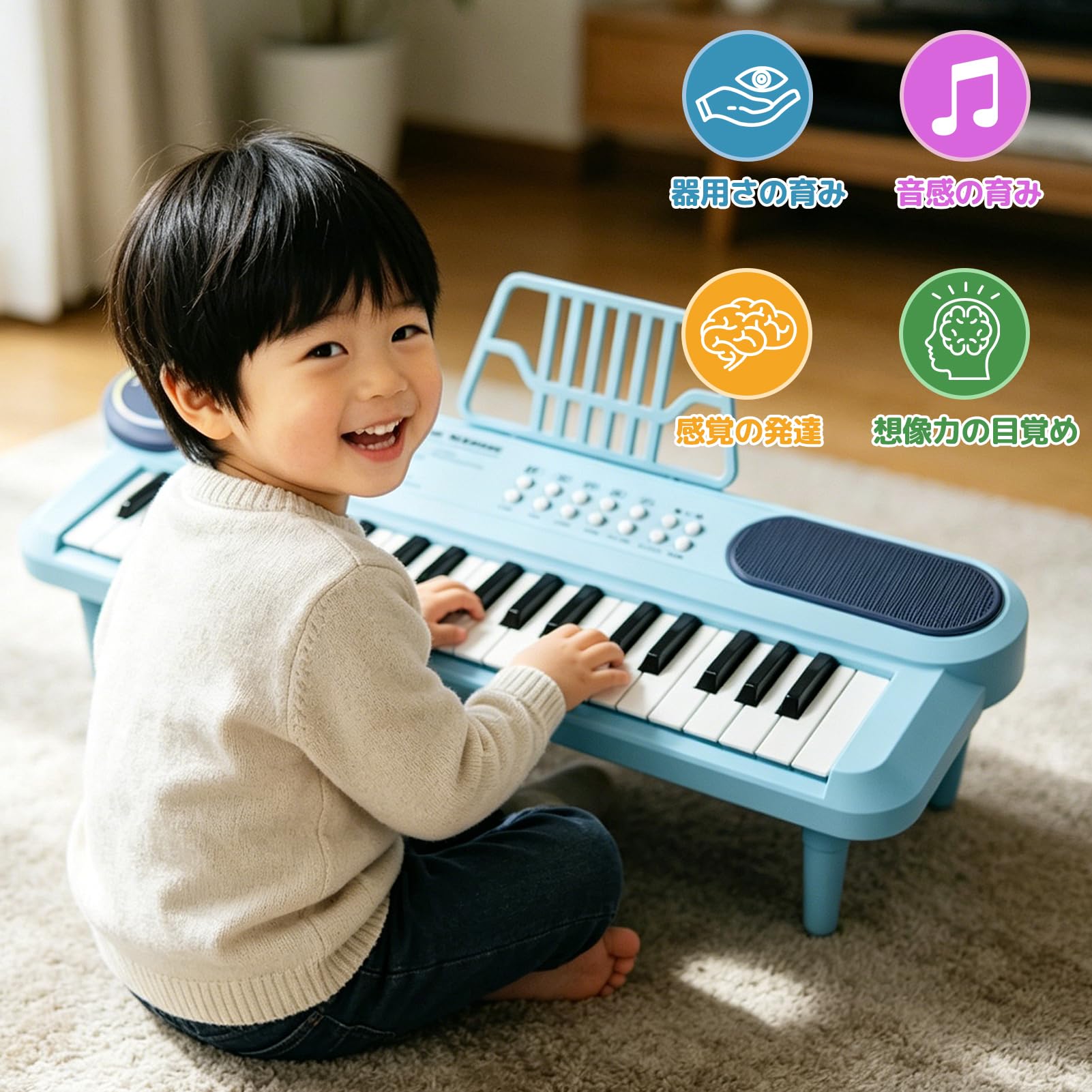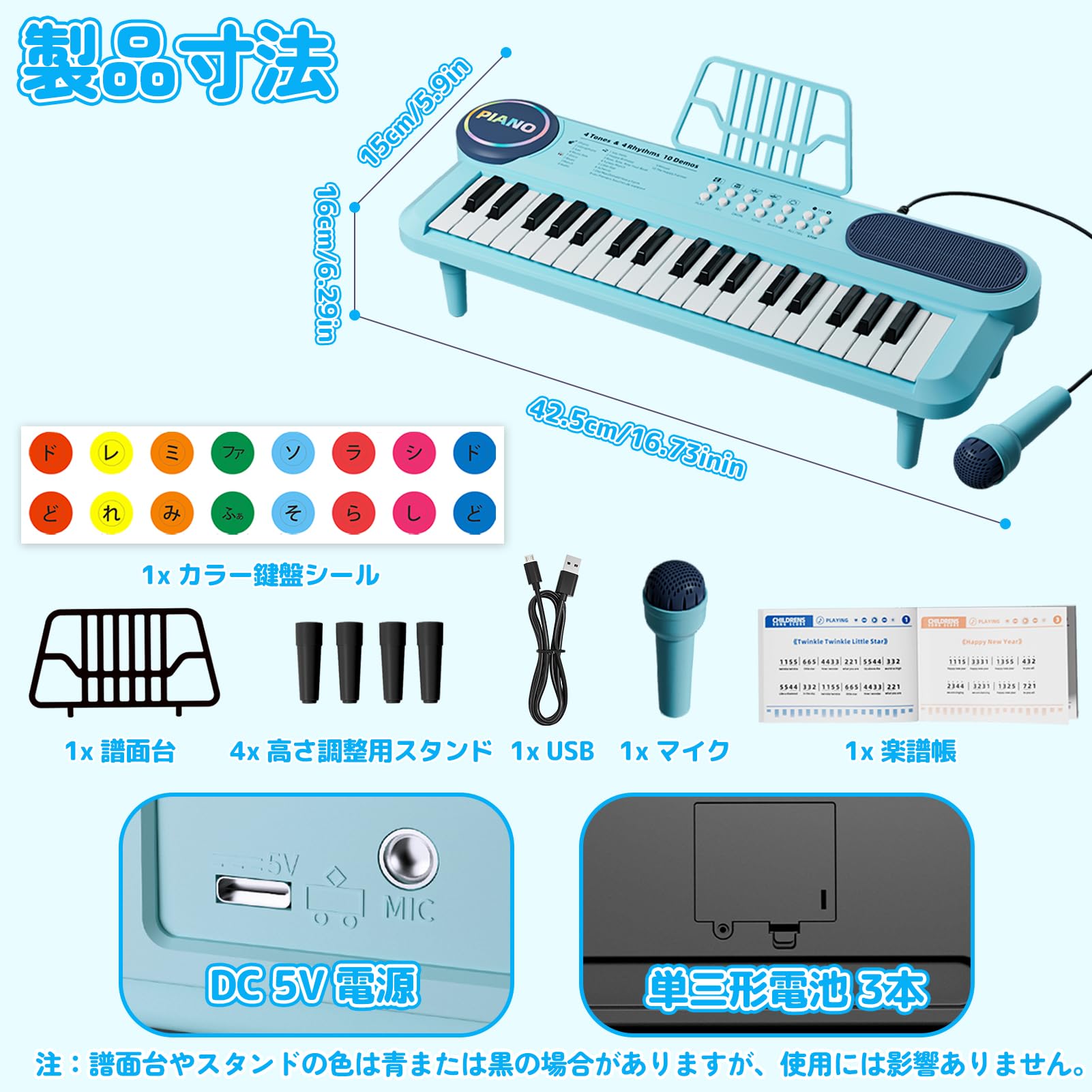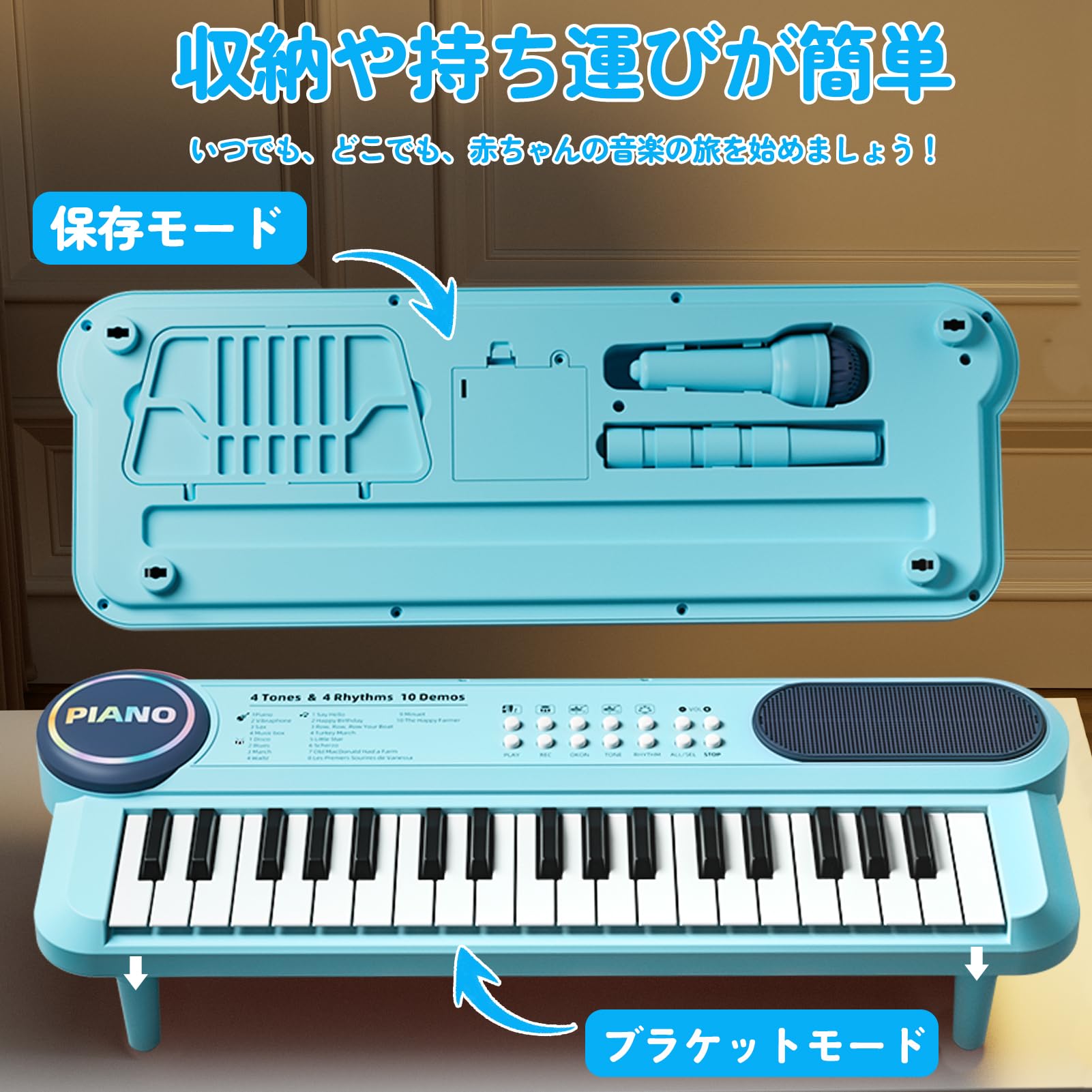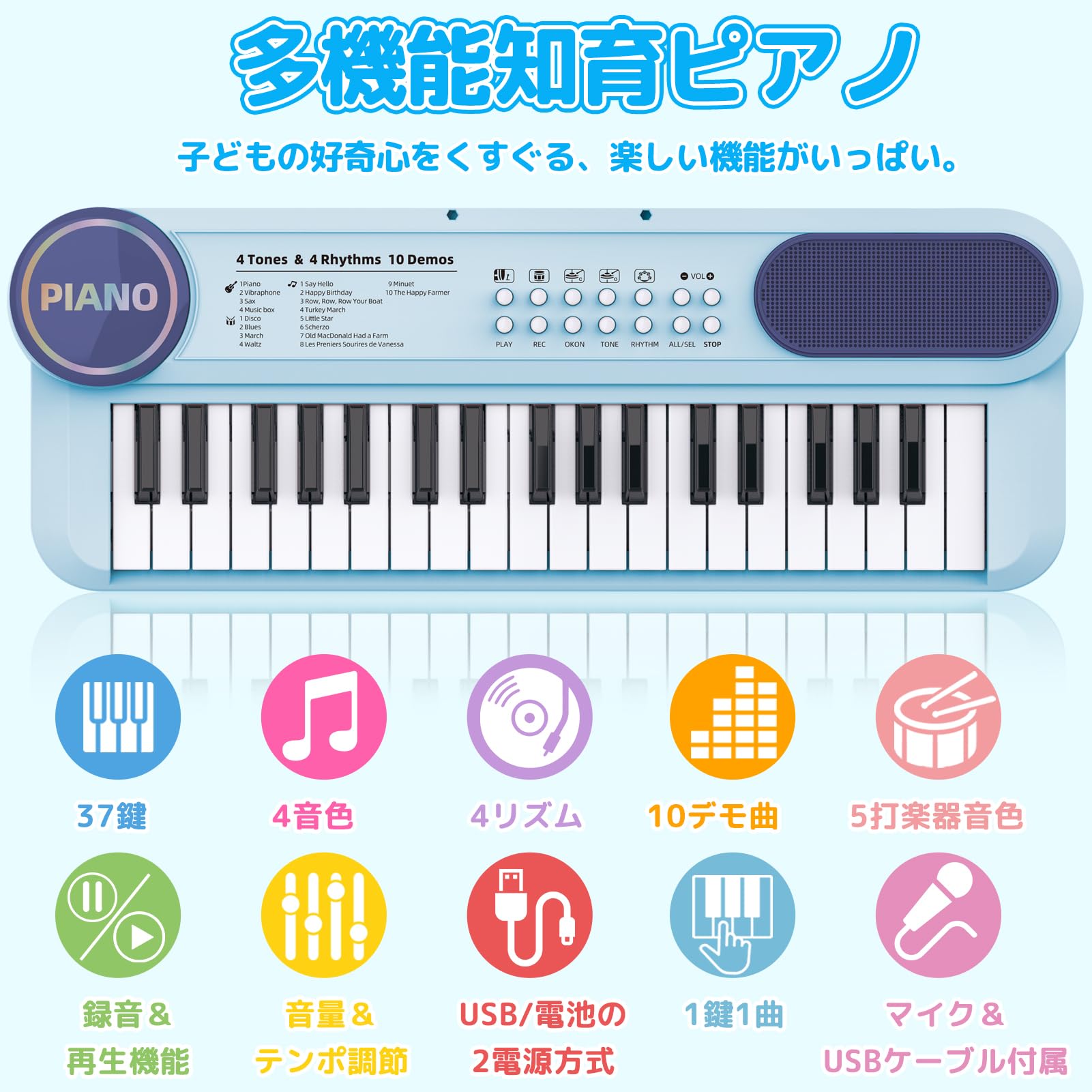 多機能 子供用ピアノキーボード 早期教育玩具 37鍵盤こども楽器玩具 早期開発 幼児 おもちゃ ポータブル音楽キーボード ピアノ玩具 男の子 女の子 おもちゃ 誕生日 プレゼント クリスマスギフト