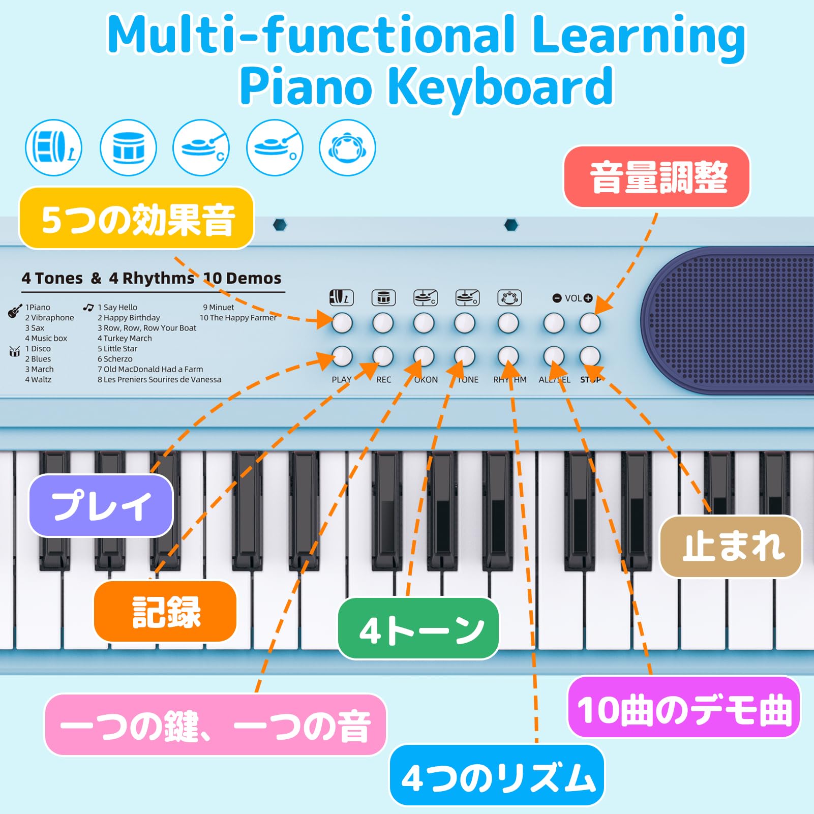子供用ピアノ玩具、37鍵ブルー音楽ピアノキーボードマイク付き