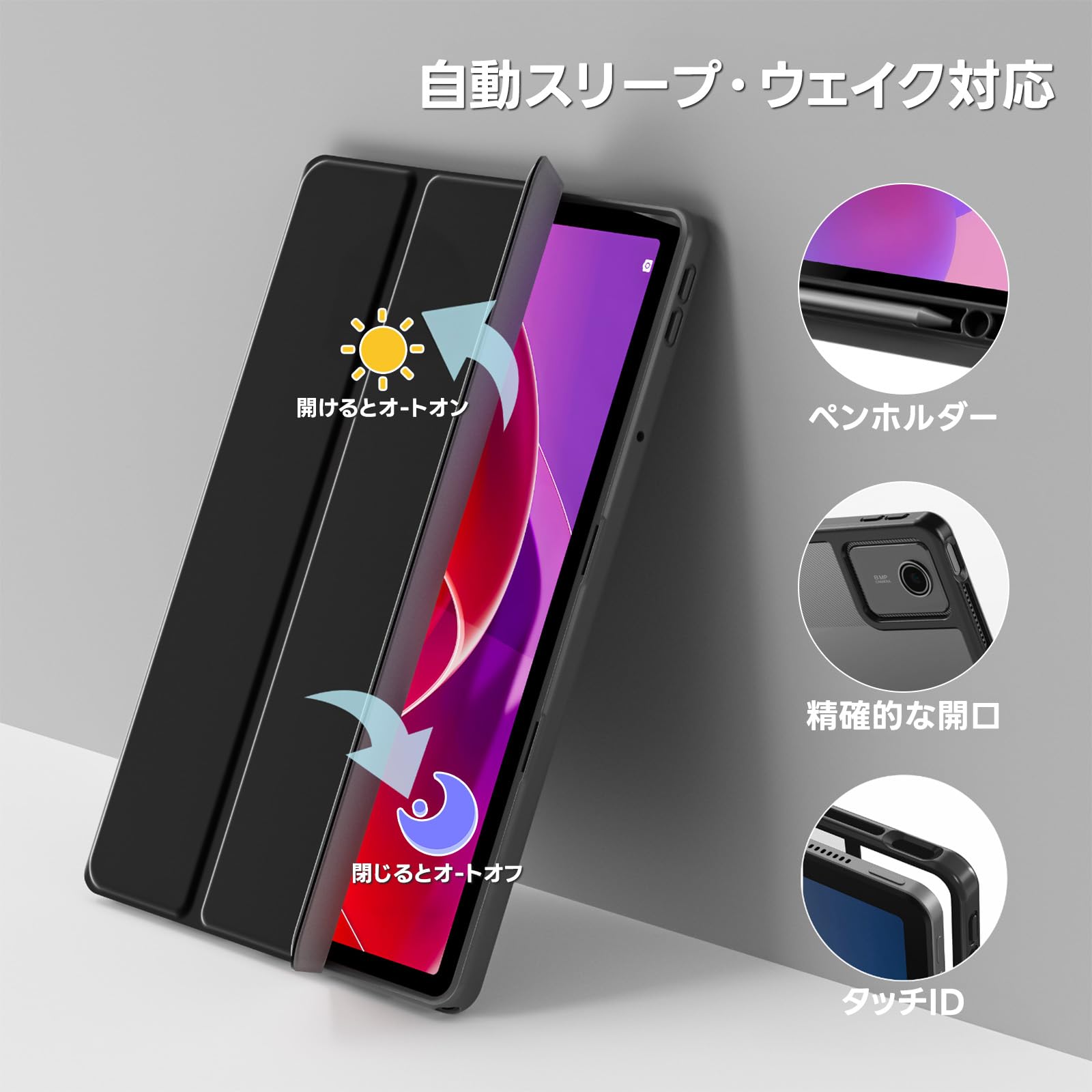 Tablet ケース 11インチ 2025発売(ZAFR0387JP)ペン収納 耐衝撃 保護ケース シリコンカバー (ブラック)