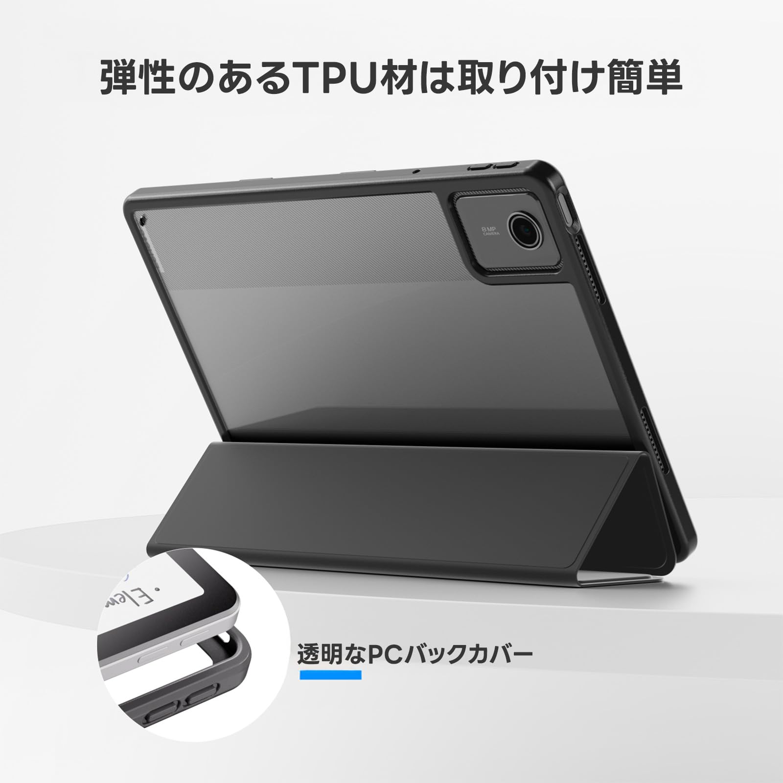ProCase Xiaomi Mi Pad 5/ Pad 5 Proケース 2021 11インチ ペン収納 透明バックカバー 軽量 三つ折り スマートカバー ブラック