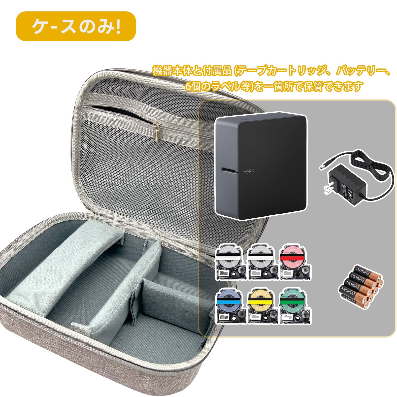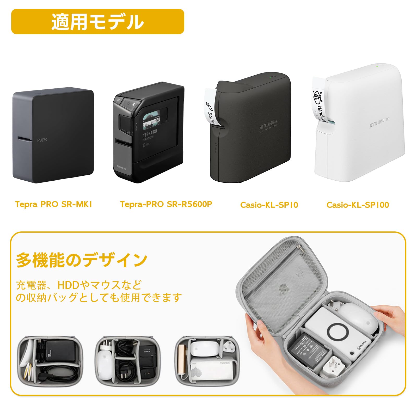 ラベルプリンターの保管ケース 「テプラ」PRO SR-MK1/ SR-R5500 / SR-R5600に対応 「カシオ」KL-SPに対応 テプラPROACアダプターとテープカートリッジ用収納バッグ(ボックスのみ)