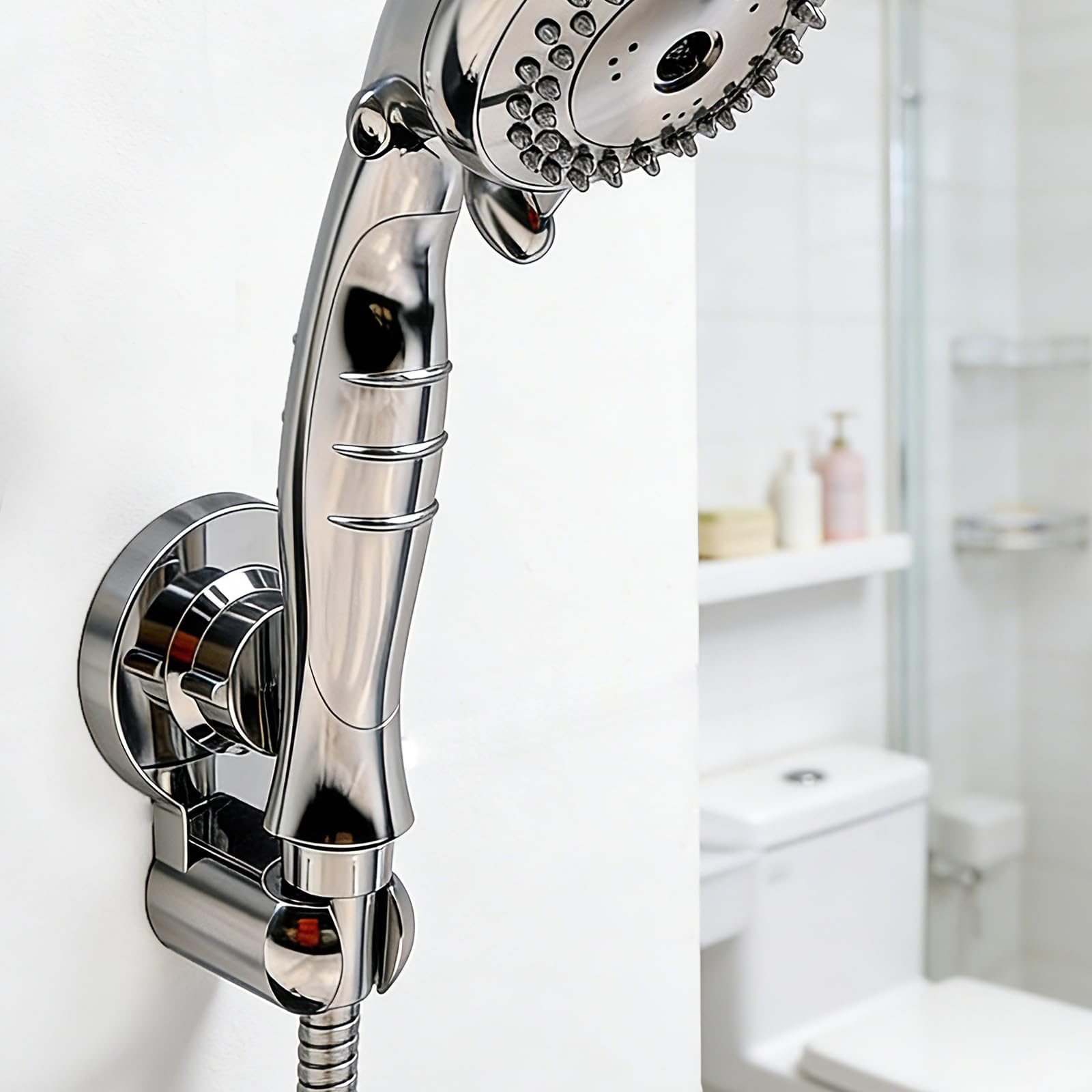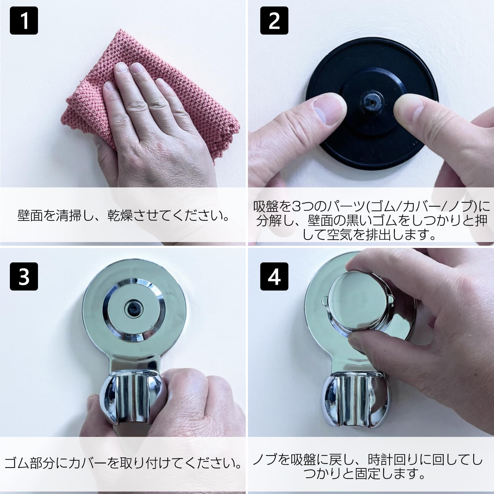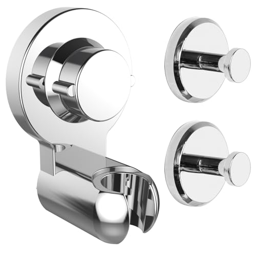 Poywaze シャワーホルダー 吸盤 固定式 穴あけ不要 頑丈でグラつかない 強力真空吸盤 賃貸対応 お風呂用品 ホワイト (耐荷重5kg)