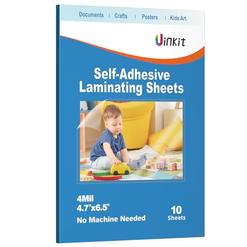 Uinkit 独自接着カバーフィルム 100μm A4サイズ、10枚入 機械不要、その場で簡単ラミネート 手貼りラミフィルム, ラミネートフィルム、コーティングシート