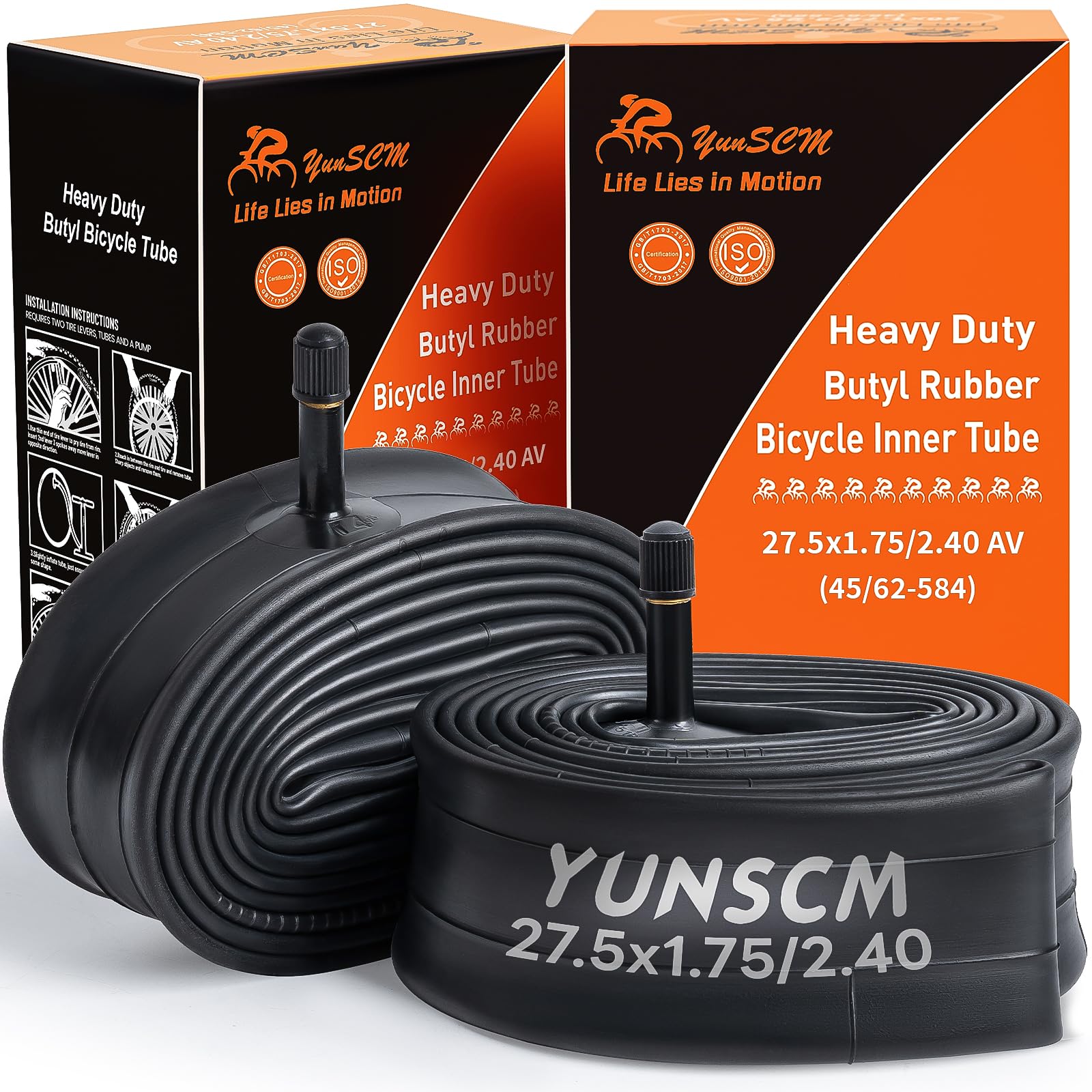 YunSCM 2本,27.5 1.95 チューブ 肉厚,自転車チューブ 27.5x1.75/2.4,米式バルブ32mm,適用 27.5x1.75/27.5x1.95/27.5x2.10/27.5x2.125/27.5x2.25/27.5x2.35/27.5x2.4 クロスバイク、電動アシスト自転車
