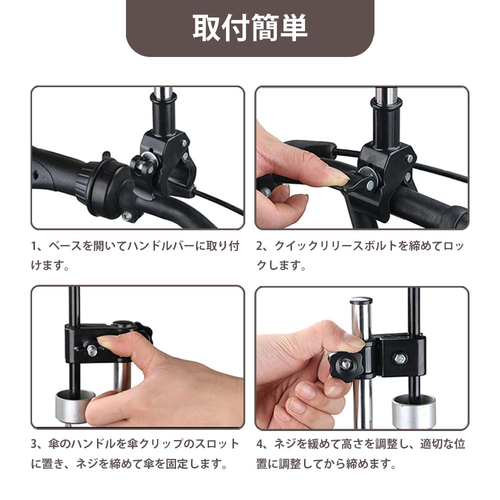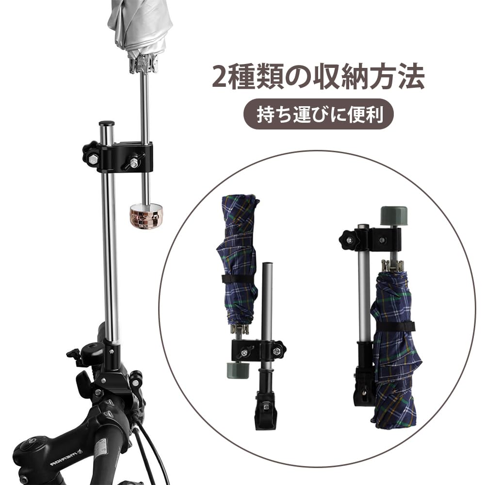 MuGaoDee 傘立て 自転車 傘ホルダー 車 組立不要 傘スタンド 手ぶら 360度回転 さすべえ 傘 アタッチメント 電動自転車 傘立て 自転車アクセサリー 傘キャッチ 滑り止め 高さ調整 ベビーカー/車椅子/キックスクーター 設置簡単 ハンズフリー ステンレス