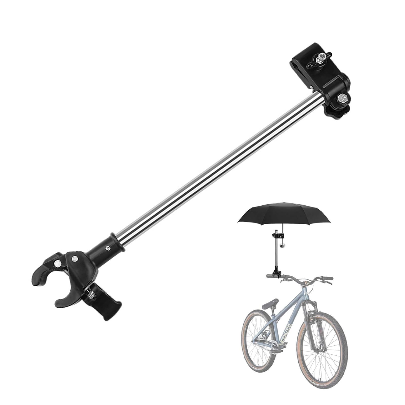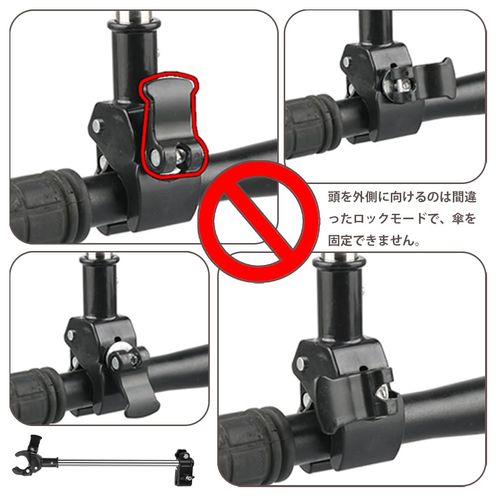 LKCCTK ステンレス鋼傘サポートホルダー 安定ホルダー 傘の固定 紫外線対策 日除け 雨 速い固定 取り付け簡単 360°回転 高さ調節可能 自転車 電動自転車 ベビーカー オートバイ 車椅子用