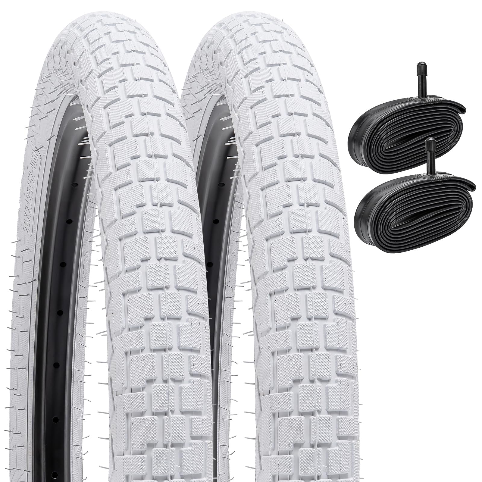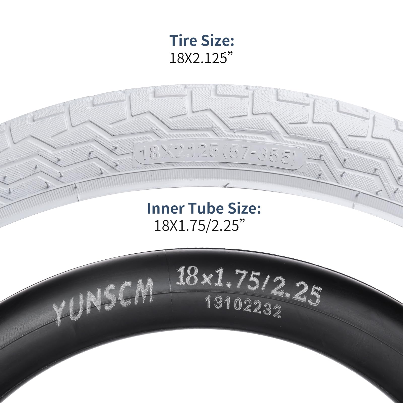 YunSCM 2本セット,18 2.125 タイヤ ホワイト,18x2.125 52-355 自転車タイヤ カラー+ 18x1.75/2.25 チューブ 肉厚 米式バルブ32mm,適用 18インチ 2.125 マウンテンバイク,Y-284(白)