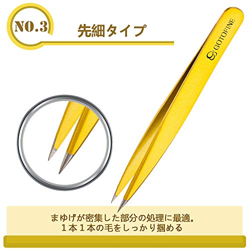 先細タイプ:細かい部分の処理に最適です。眉毛など密集した部分の毛を1本1本がっちりと掴むことができます。