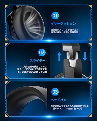 最新モデルであるゲーミングヘッドセットをYOTMSからお届けいたします。蛋白質の革製の密閉型イヤパッドを採用し、外部の雑音をシャットアウトするだけでなく、イヤパッドから漏れた音 をマイクで拾ってしまうといったループ現象を防ぎます。高中低音域から重低音までをクリアに再生する大型50mmマグネットドライバを使用しており、幅広い音楽・ゲームに対応できるヘッドフォンです。ノイズキャンセリング機能・LEDライトを搭載しており、ヘッドアームの調整も可能です。軽量設計:ヘッドセット全体が軽量で、柔らかいイヤークッションを装着した人間工学に基づいたソフト蛋白質レザーイヤーパッドを採用しており、優しく耳を包みこむことで、長時間の使用でも快適にできるような作りとなります。保温性と通気性があり、冬には保温効果を高めて夏には熱や湿気が減らせます。ハイクオリティ音質:クリアな高中音域から強力な重低音までを再生する大型50mm強磁力ネオジウムマグネットドライバを装備し、臨場感あふれるサウンド音質最高の密閉型イヤホンで様々なゲーム(立体的で臨場感に満ちた音場を忠実に再現し、正確に敵の足音を聞き取り位置や動きを察知することができます。