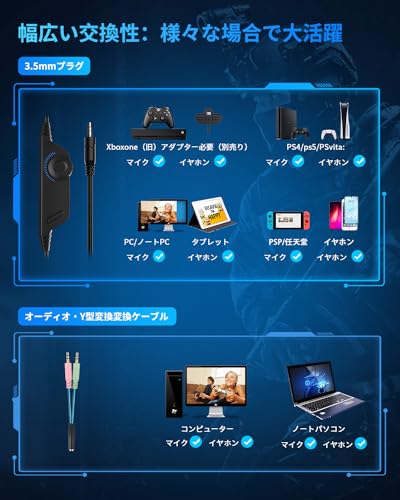 ーミングヘッドセット ヘッドセット ps4 ヘッドホン 高精密マイク付き 有線 重低音