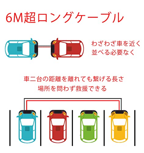 6メートル長い3200AMPのケーブル、芯線直経が35²mm太く、12V、24V軽自動車大型トラックまで基本的に全ての車に対応。