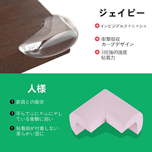 当社のコーナーガードはPVC製で、柔らかく耐衝撃性に優れ、透明でQティップタイプです。 特にお子様や赤ちゃん、ご高齢の方のいるご家庭に最適です。 赤ちゃんのハイハイや、お子様が遊んでいるときに誤ってテーブルの角にぶつかり、人身事故を起こしてしまうことを防ぐことができます。