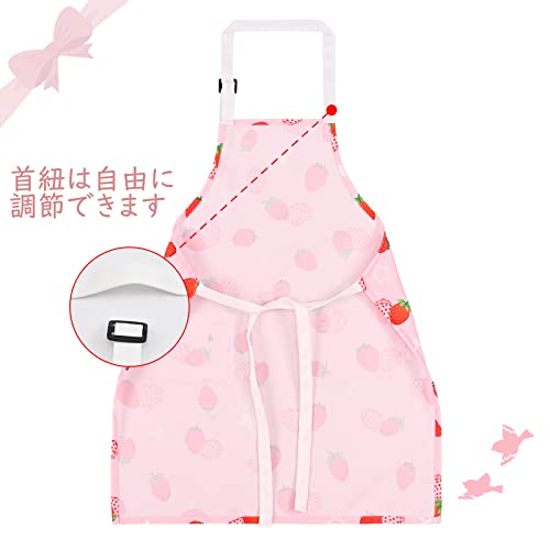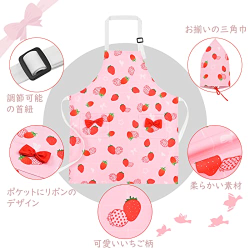 Athbavib キッズエプロン いちご ピンク 三角巾付き
