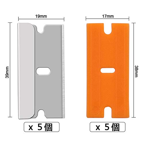 【セット内容】スクレーパー本体、スクレーパーブレード。交換用ブレードは二種類あります。 10個あるブレードの内、5個のブレードはプラスチック製、5個のブレードはステンレス製となっております。プラスチック製の保護キャップも付き。