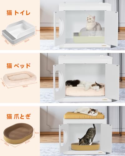 HoneyGuaridan 猫 トイレ 自動 スマホ管理 全自動猫トイレ 多頭飼いにも最適 飛散防止 センサー付き 清掃完全自動 定期清掃 挟み込み防止・消臭設計 IOS/Android対応 猫砂マット付き 日本語説明書付き