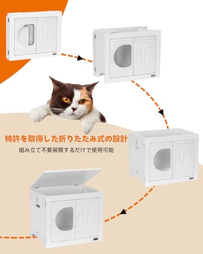 Wallfire 猫 トイレ 猫用トイレ本体 ネコトイレ 大容量 大型 2way出入り方法 砂の飛び散り防止 掃除簡単 脱臭抗菌 スコップ付き フルカバー 折りたたみ 組み立てしやすい 引き出し付き おしゃれ 人気 (イエロー)