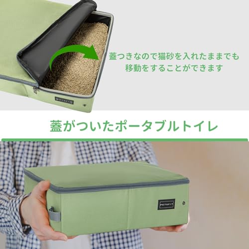 PETSFIT 猫 トイレ 携帯 折りたたみトイレ 防災用猫トイレ 防水 おでかけ用 持ち運び グレー