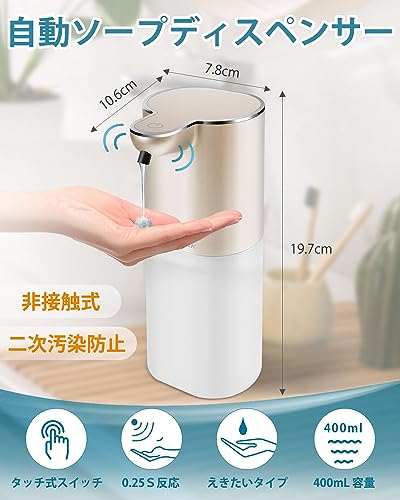 赤外線センサ技術を採用し、手をかざすと赤外線センサーが感知して適量のソープが自動的に出てきます。