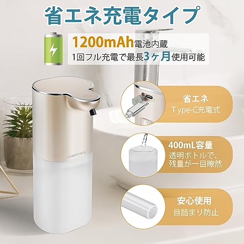 400 mlの大容量ボトルがあり、これ以上頻繁にハンドソープ液を入れる必要はありません。透明なボトルのデザインなので、洗剤の残量がひと目でわかります。