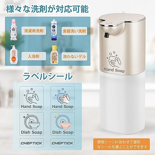 市販の食器洗い洗剤や液体ハンドソープ、消毒用のアルコールジェル、ハンドジェルソープ、シャンプー、ボディーソープ等様々な液体洗剤対応できます。