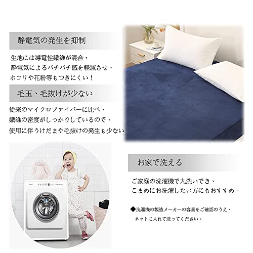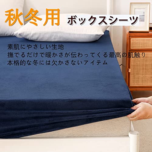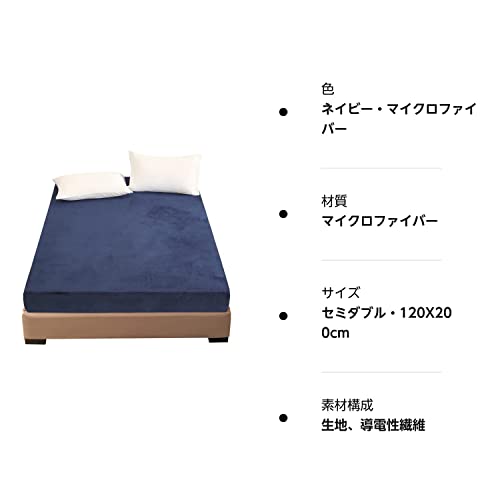ボックスシーツ 冬用 マイクロファイバー 静電気防止 マチ部分約30cm シーツ 暖かい寝具 吸湿発熱 全周ゴム付き ベッドシーツ マットレスカバー ベッドカバー 毛抜けにくい ふわふわ 抗菌防臭 防ダニ (ネイビー・マイクロファイバー, セミダブル・120X200cm)