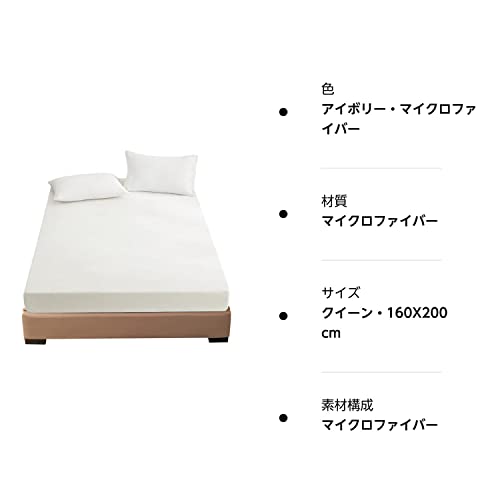 ボックスシーツ 冬用 クイーン マイクロファイバー 静電気防止 マチ部分約30cm シーツ 暖かい寝具 吸湿発熱 全周ゴム付き ベッドシーツ マットレスカバー ベッドカバー 毛抜けにくい ふわふわ 抗菌防臭 防ダニ (ホワイト・マイクロファイバー, クイーン・160X200cm)