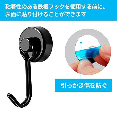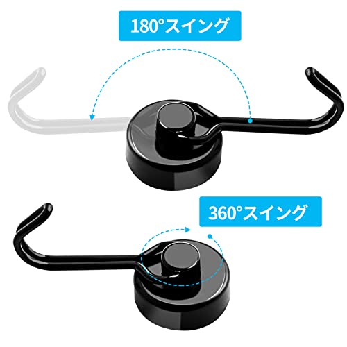 【6個セット】マグネット フック 磁石 フック 超強力 磁石付き ステンレス製 防錆 垂直耐荷重10kg キッチン用 オフィス用 冷蔵庫 玄関キー ホルダー 浴室 お風呂 壁掛け用 (6, ブラック) 43*20*12mm