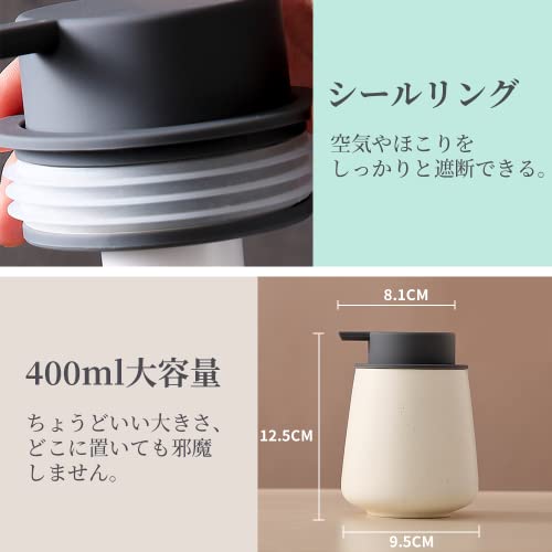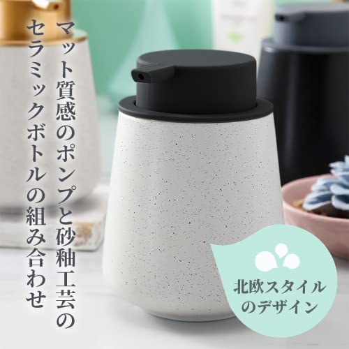 【セラミック製】:高品質のセラミック製のボトル、マットな質感のポンプ、肌触りが心地よいです。ポンプのヘッドはプラスチック製です。