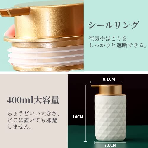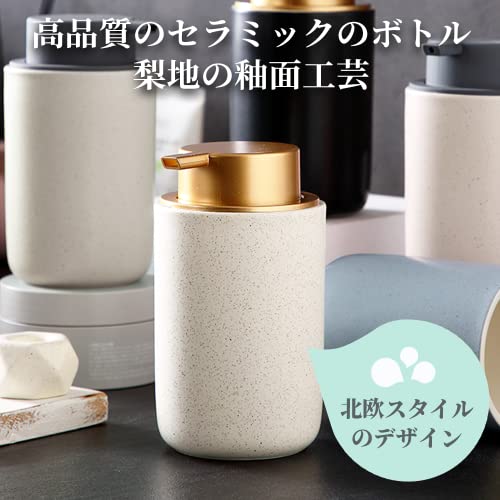 【セラミック製】:高品質のセラミック製のボトル、マットな質感のポンプ、肌触りが心地よいです。ポンプのヘッドはプラスチック製です。
