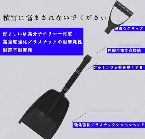 多機能シャベル:車で野外に行くにしても、雪の中でキャンプをするにしても、スノーモービルに乗るにしても、信頼できる軽量なシャベルを持っていなければなりません。この雪かきは冬の最高の応急具だ。雪かきシャフトのT字型部分は滑り止めPP材料で作られており、シャベルをより強固に握り、快適な使用感を得ることができる。