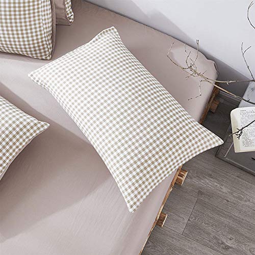 Ovege 布団カバー 4点セット セミダブル 掛け布団カバー ボックスシーツ 枕カバー 洋式・和式兼用 2方向ジッパー 100%マイクロファイバー ピーチスキン加工 洗い替え速乾タイプ (ベージュ, セミダブル・4点セット)