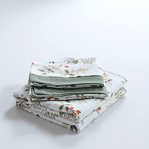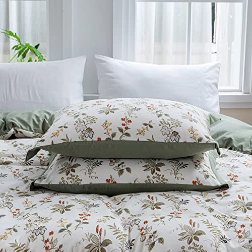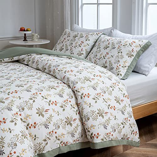 Ovege 布団カバー 3点セット シングル 掛け布団カバー ボックスシーツ 枕カバー 洋式・和式兼用 ジッパー 100%マイクロファイバー ピーチスキン加工 洗い替え速乾タイプ (ガーデン-クリーム, シングル・3点セット)