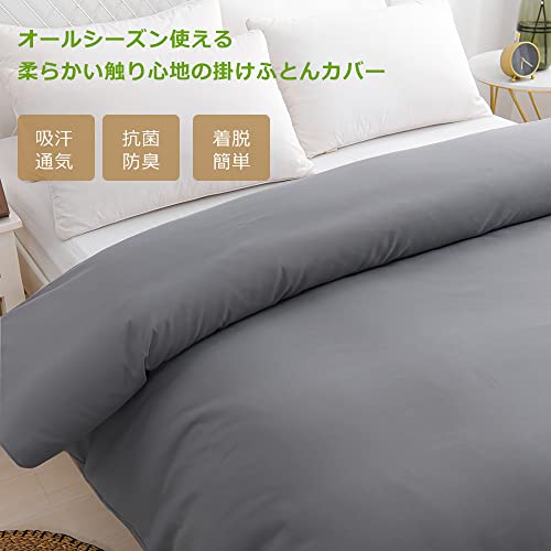 掛け布団カバー ダブル オールシーズン 寝具カバー 柔らかい触り心地 肌にやさしい 全開ファスナー 紐8ヶ所付 ズレ防止 ふとんカバー 着脱簡単 毛玉なし 寝汗吸収 通気速乾 防臭防ダニ 190×210cm グレー
