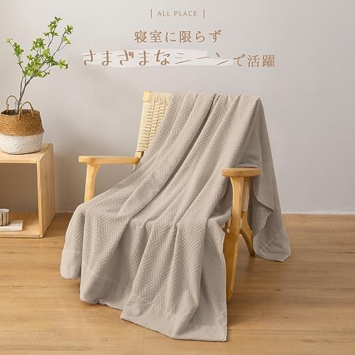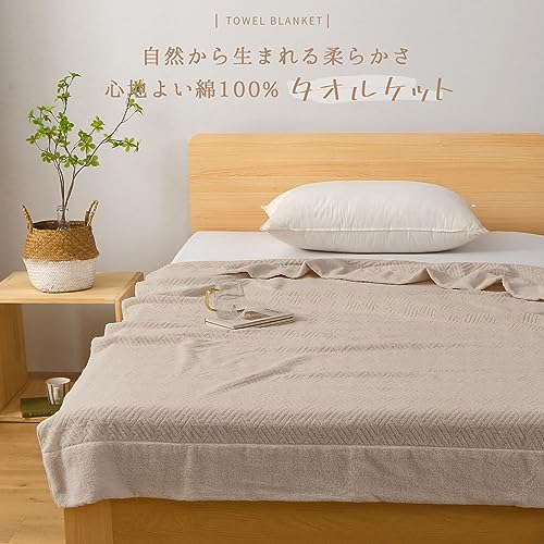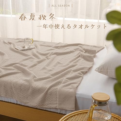 SE タオルケット ダブル ブランケット 綿100% 柔らかい ふんわり 吸湿速乾 抗菌防臭 洗える オールシーズン 180cmx200cm ベージュ 「SE Softexly」