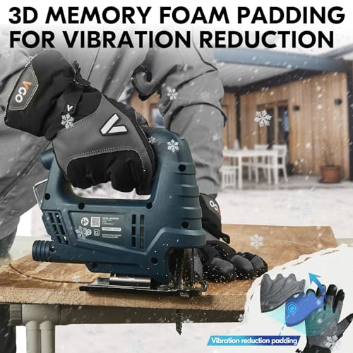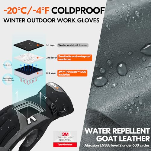 [Vgo...] 20℃ or -20℃ 以上に 3M C100 冬用 合成革 タッチパネル 裏綿付 防水 厚手 作業用グローブ 防寒作業革手袋GA7711FW(1双入,L, ブラック+グレー)