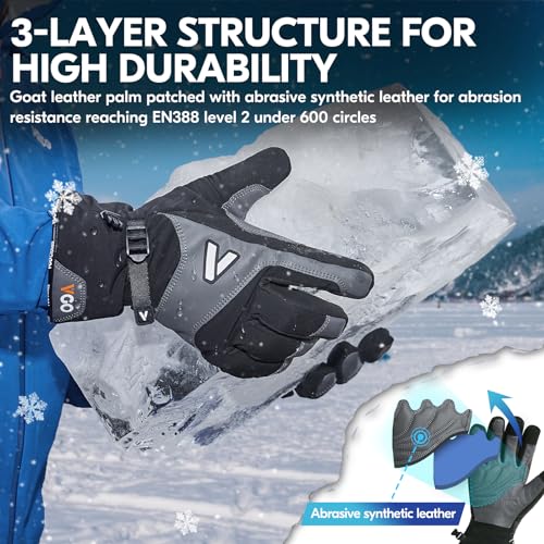 [Vgo...] 20℃ or -20℃以上に 3Mシンサレート 高機能断熱素材 C120裏綿付 防寒テムレス 防寒防水作業手袋 牛革グローブ タッチパネル 冷凍庫グローブ 登山 雪遊び サイクリング保温 冬厚手1双入GA7760FLWP(ブラック,XL)