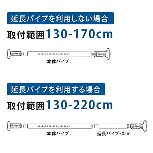内蔵高強度ばね。強力タイプの突っ張り棒です。耐荷重約10~30kg(※設置する長さで変わりますので伸縮が少ない方がより荷重能力が優れます。)
