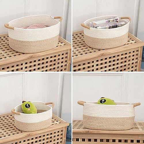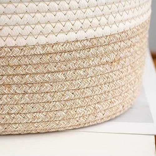 Wallfire 収納バスケット ロープバスケット 収納かご 小物入れ カゴ おもちゃ 深型 卓上収納 北欧 編み込み 持ち手付き 積み重ね ホワイト M