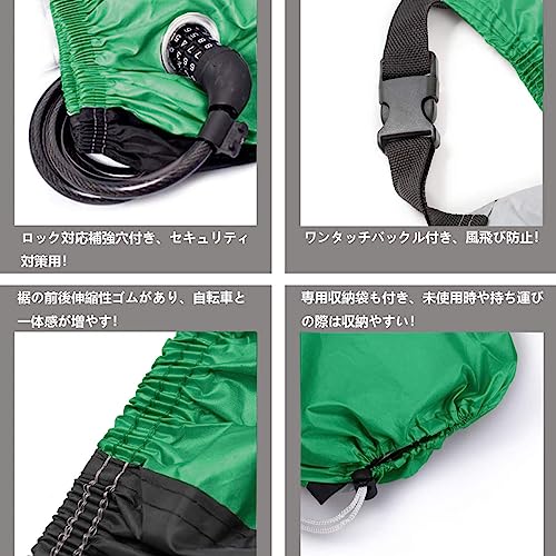 • 前輪にはロック対応補強穴が2つあります、様々なロックにマッチできます、カバーと自転車の一体感が増やすことができます。それに、風で飛ばされることなく、盗難対策もバッチリです。