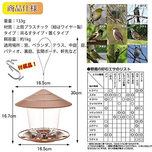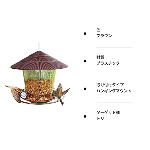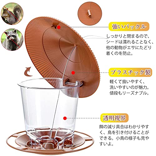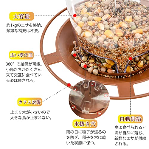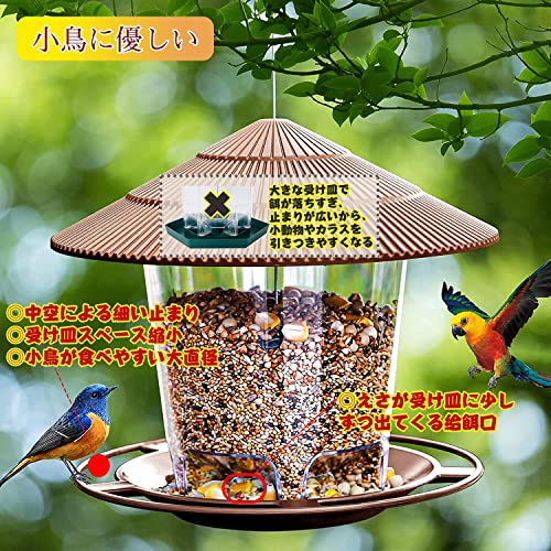 NGE バードフィーダー 鳥と心を繋ぐ 屋根付き 自動給餌 大容量1kg 吊り下げ 防滴・カラス対策 軽量 バードウォッチング 窓辺 ベランダ 庭 ガーデン 小鳥 野鳥 自然の癒し (ブラウン)
