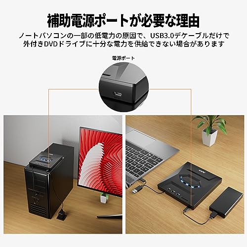 外付けDVDCD 再生ドライブUSB3.0 対応可ポータブルCDDVDプレイヤー 再生 視聴 読書 書込対応可Window/Mac OS両対応 外付けドライブtype-c対応高速 静音 超スリム焼損防止
