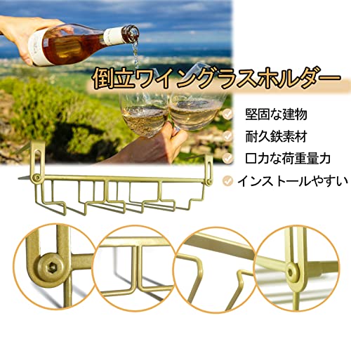 ワイングラスホルダー 吊り下げ ステンレス製 穴あけ不要 棚厚さによって調節可能 (2レーン(タイプ2))