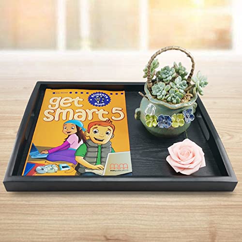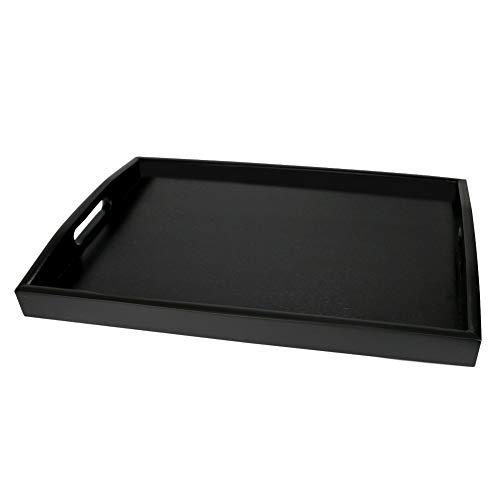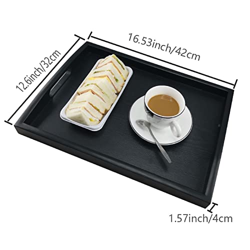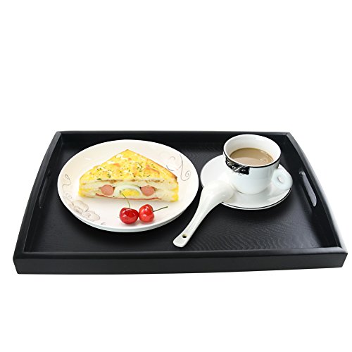 SILILUN 木製トレー お盆トレイ おしゃれ 長方形 漆塗り 黒 木目 四角 北欧 すべらない 洗える 長角膳 角型 長手盆 定食用 ウッドトレー 定食盆 北欧 舟型 (42*32CM)