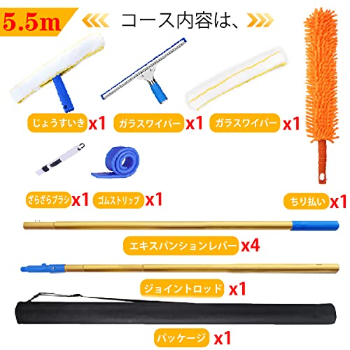 LSPYYDS ガラスワイパー 伸縮柄 クリーニングツール 長さ1.4~12.5m 外壁 ガラス ブラシ 高い ところ の 窓 拭き 伸びる ロングモップ 大掃除セット クリーニングツールワイパー マルチセクション伸縮ロッド 操作しやすいと使用 多目的 ガラスクリーニングツール 浴室/窓/天井/鏡/壁など掃除用 (セットB、5.5M)
