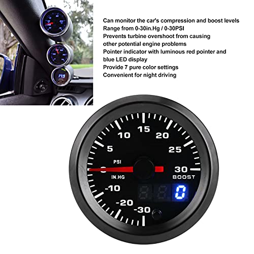 仕様:アイテム タイプ: ターボ ブースト ゲージ素材: プラスチック装備: すべての 12V 車に共通。ブーストレベル: 0-30 IN.HG、0-30PSI直径: 約。 2インチ/52mm電流: IGN MAXIMUM 0.3A ILM 0.3A電源: DC (10-15V) 12V プロフェッショナル配線: 赤陽性黒ネガグリーンコネクトブーストセンサーパッケージリスト:1 x ターボ ブースト ゲージ1×電源コード1 x ブースト センサー1×Tアダプター1×コネクタ1×ホース1 x マニュアル