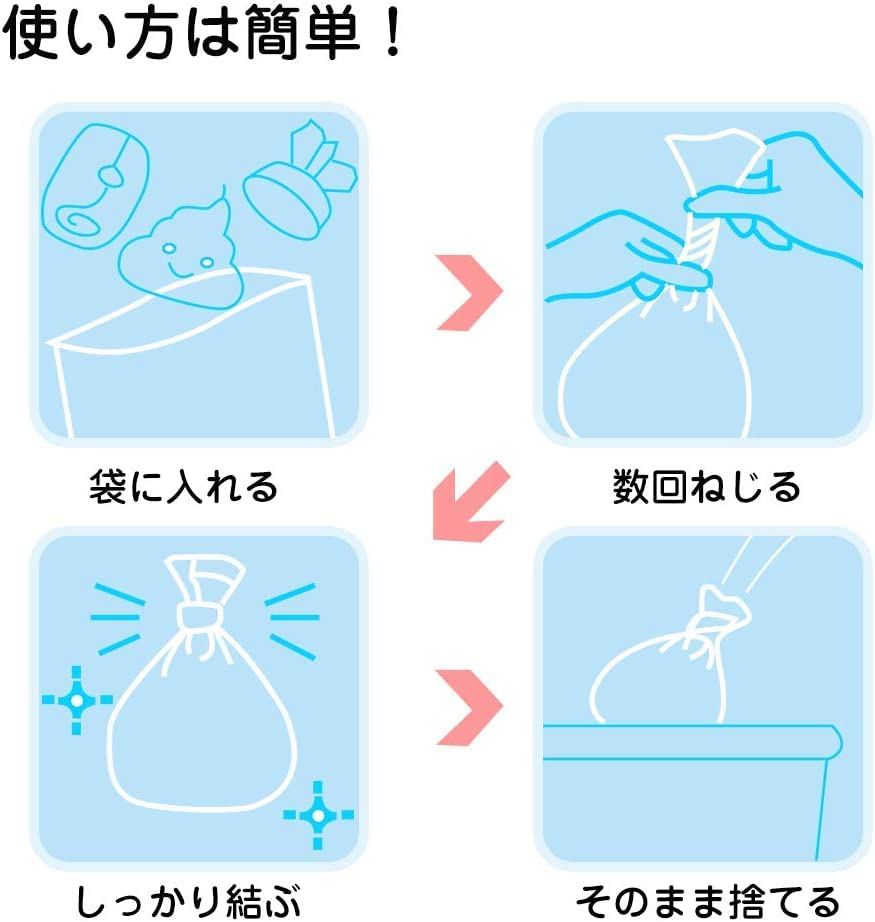 大人用の紙オムツ、下着(パンツ等)の処理、嘔吐物の処理、汚れたタオル、シーツなどに素早く清潔に処理に役に立ちます。