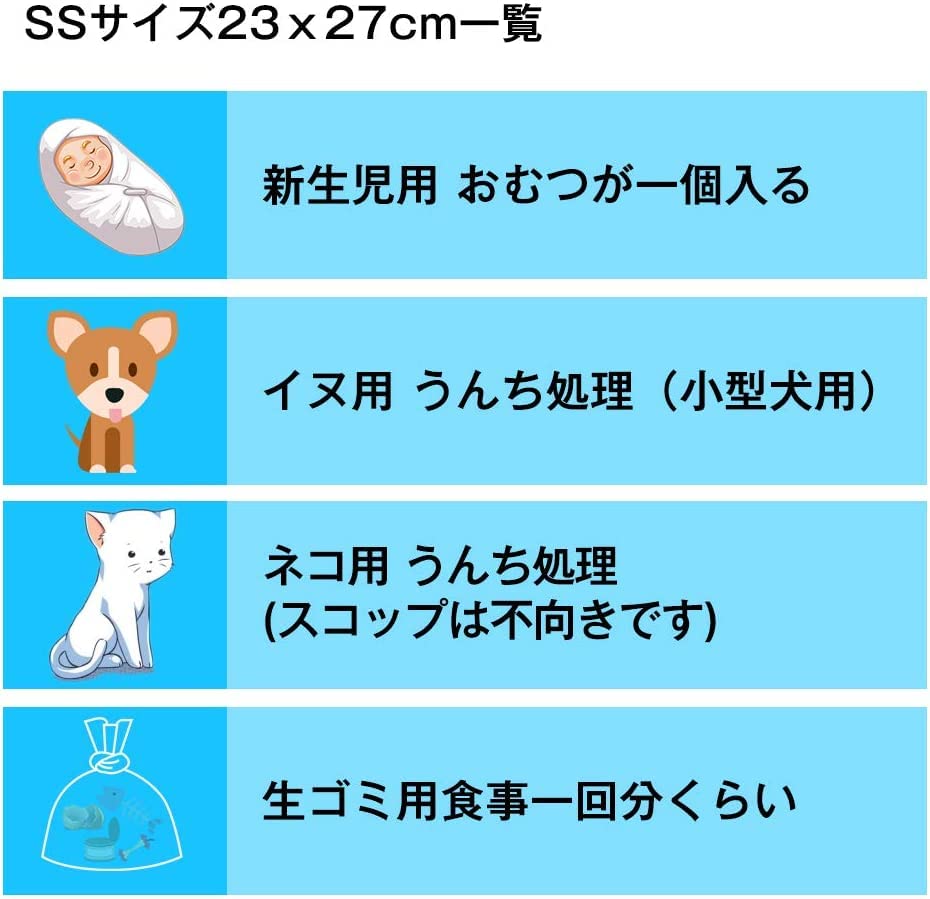 こちらのSSサイズが23x27cmとなり、袋の口が大きいのでゴミを入れやすいです。環境を考え燃やしても有毒ガスを発生しない素材です。