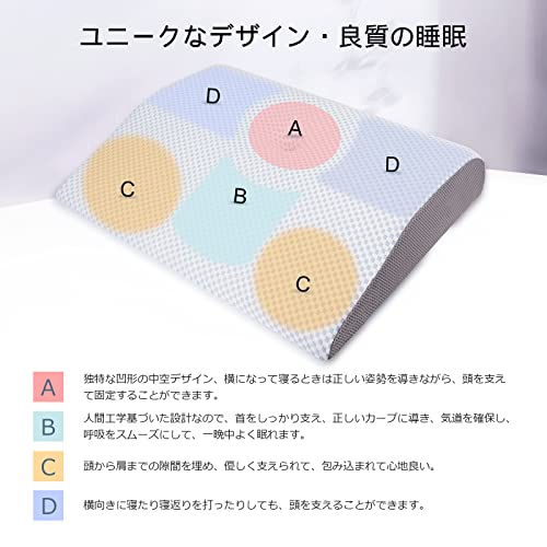 B・人間工学基づいた設計なので、首をしっかり支え、正しいカープに導き、気道を確保し、呼吸をスムーズにして、一晩中よく眠れます。