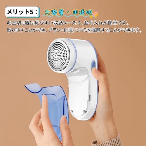毛玉切り器は見やすい収納ケースで、お手入れが簡単です。取り外すことができ、ブラシ(付属)でゴミを掃除することができます。